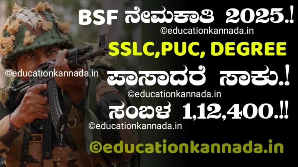 BSF 1,121 ಹುದ್ದೆಗಳ  ನೇಮಕಾತಿ 2025: ಪ್ರತಿ ತಿಂಗಳ ಸಂಬಳ 1,12,400.! SSLC,PUC, DEGREE ಪಾಸ್ ಆದ್ರೆ ಸಾಕು.!!